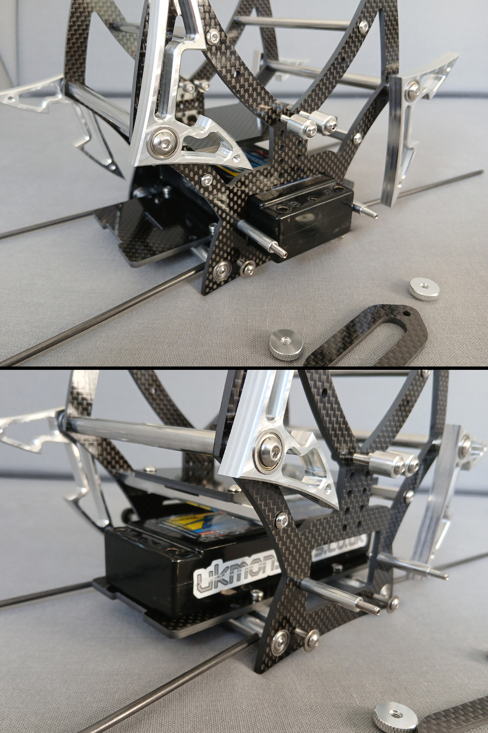 Longer carbon battery tray supports a wider veriety of lipos.