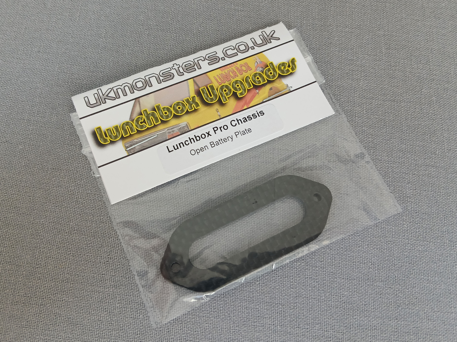 This is a chassis kit to replace the stock plastic tub chassis of your lunchbox.  Features: 3mm Carbon construction with CNC alloy bulkheads and front suspension mounts  Large low mounted radio/esc tray above the battery Adjustable height body mounts, highest position is the stock  body height. Lowest is 24mm below. The included Delrin body mounts have the standard size 4mm pin and are very strong. These can be replaced with optional 6mm versions if required.  Adjustable shock mounting positions, Oil shocks must be used. Hardware and spacers are included to fit your 80mm shocks.  Servo is mounted lower and flatter, and can be fitted in the traditional location or centralised to use equal length steering rods (included)       |